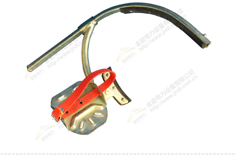 登桿腳扣簡稱腳扣,利用杠桿作用,借助人體自身重量,使另一側緊扣在電線桿上,產生較大的摩擦力,從而使人易于攀登;而抬腳時因腳上承受重力減小,扣自動松開。登桿腳扣是登高安全工具,適用于電力系統使用,也可適用于郵電通訊和廣播電視系統等行業使用。