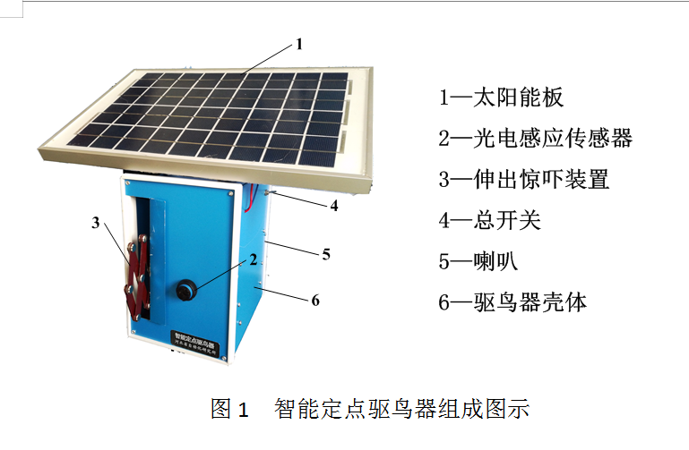 6、安裝完畢后使用時(shí),向下扳動(dòng)圖1中的總開關(guān),打開驅(qū)鳥器,可以用手遮擋一次圖1中的光電感應(yīng)傳感器,測(cè)試驅(qū)鳥器功能是否正常。