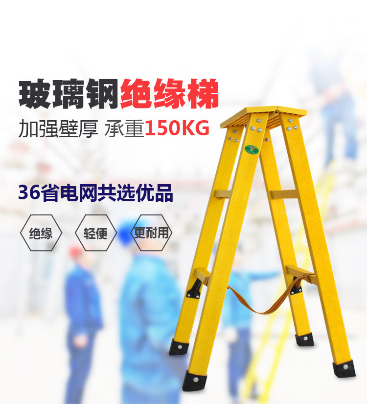 1)符合ASTM標準及GB17620-1998;(2)彈性絕緣材料合拉擠制,重量輕,機械及抗疲勞強度高,絕緣性能優(yōu)秀;(3)梯撐、梯腳防滑設計,防滑桿帶及防滑梯腳由硬質(zhì)耐磨橡膠制成,具有良好的耐磨性及耐候性;(4)等腰梯形設計,穩(wěn)定性好。