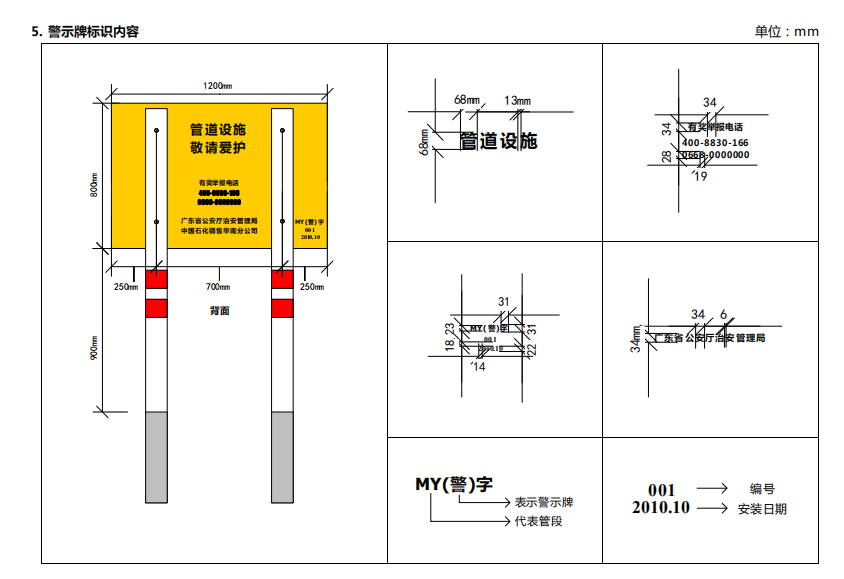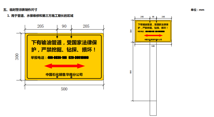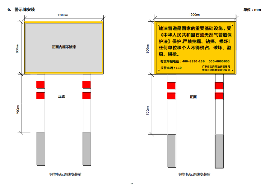 輸油管道線路標(biāo)志牌規(guī)格尺寸,輸油管道線路警示牌圖集